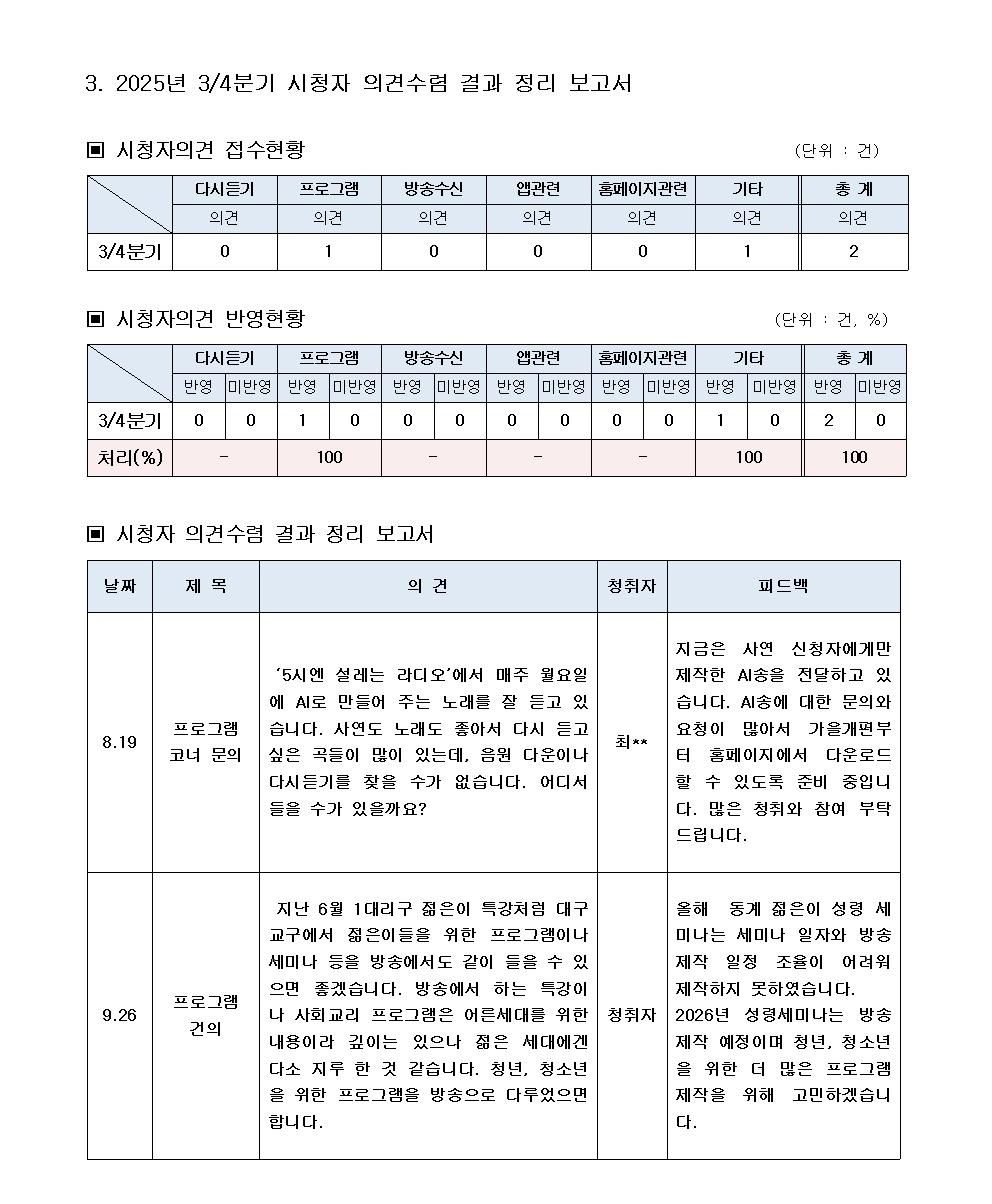 | Á¦ ¸ñ | 2025³âµµ ½ÃûÀÚ Àǰ߼ö·Å °á°ú Á¤¸® º¸°í¼ | ||